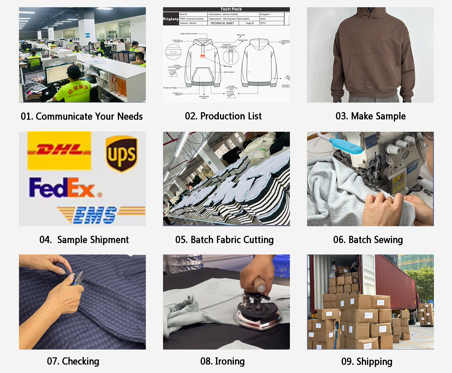 3. We can adjust and add details according to your needs. Such as adding drawstrings, zippers, pockets, printing, embroidery and other details